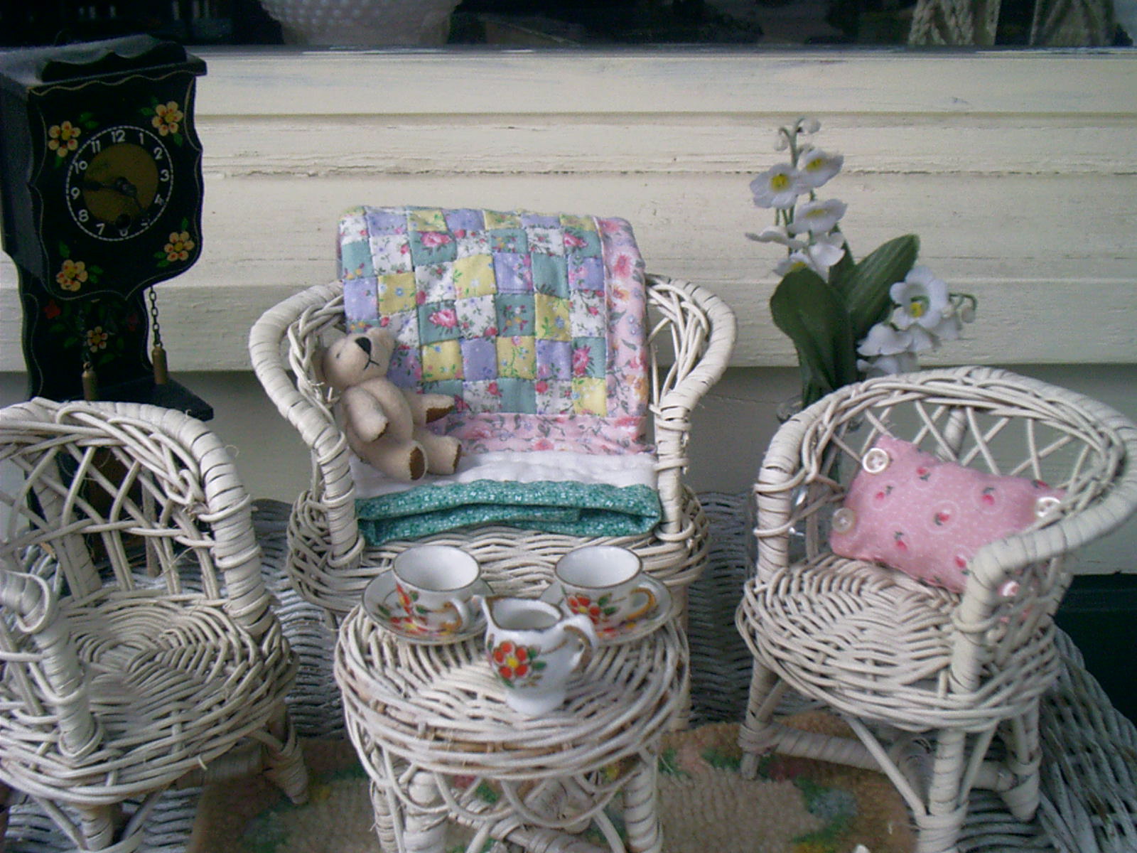 Vintage White Wicker Chair Doll Bear Heart Shaped Back Display 15 X 7 Ebay